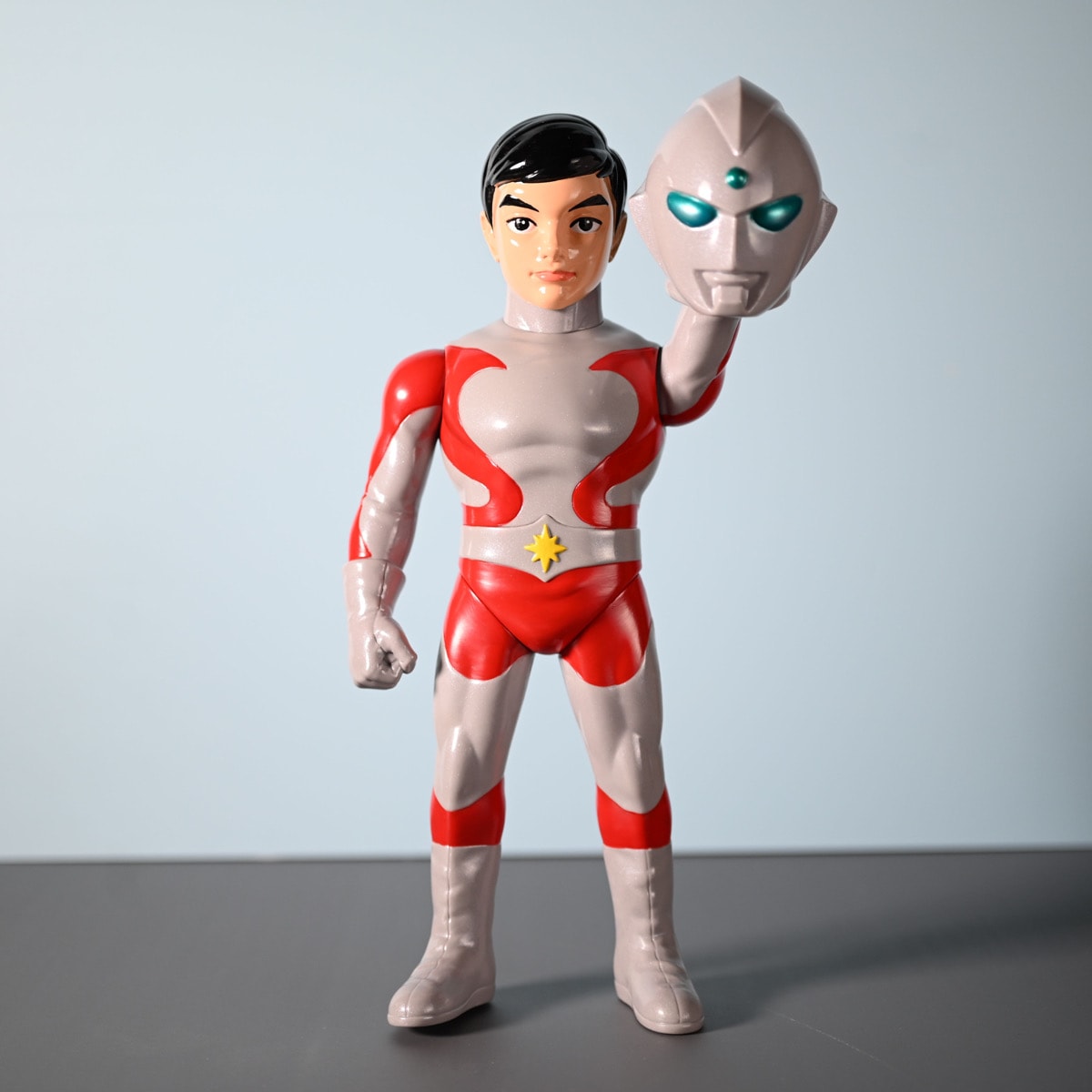 Planet-Xよりエメラルド星人が登場。レトロな造形と1stカラーにふさわしい彩色、特撮ソフビマニア垂涎のマスク着脱式仕様が激アツな逸品。