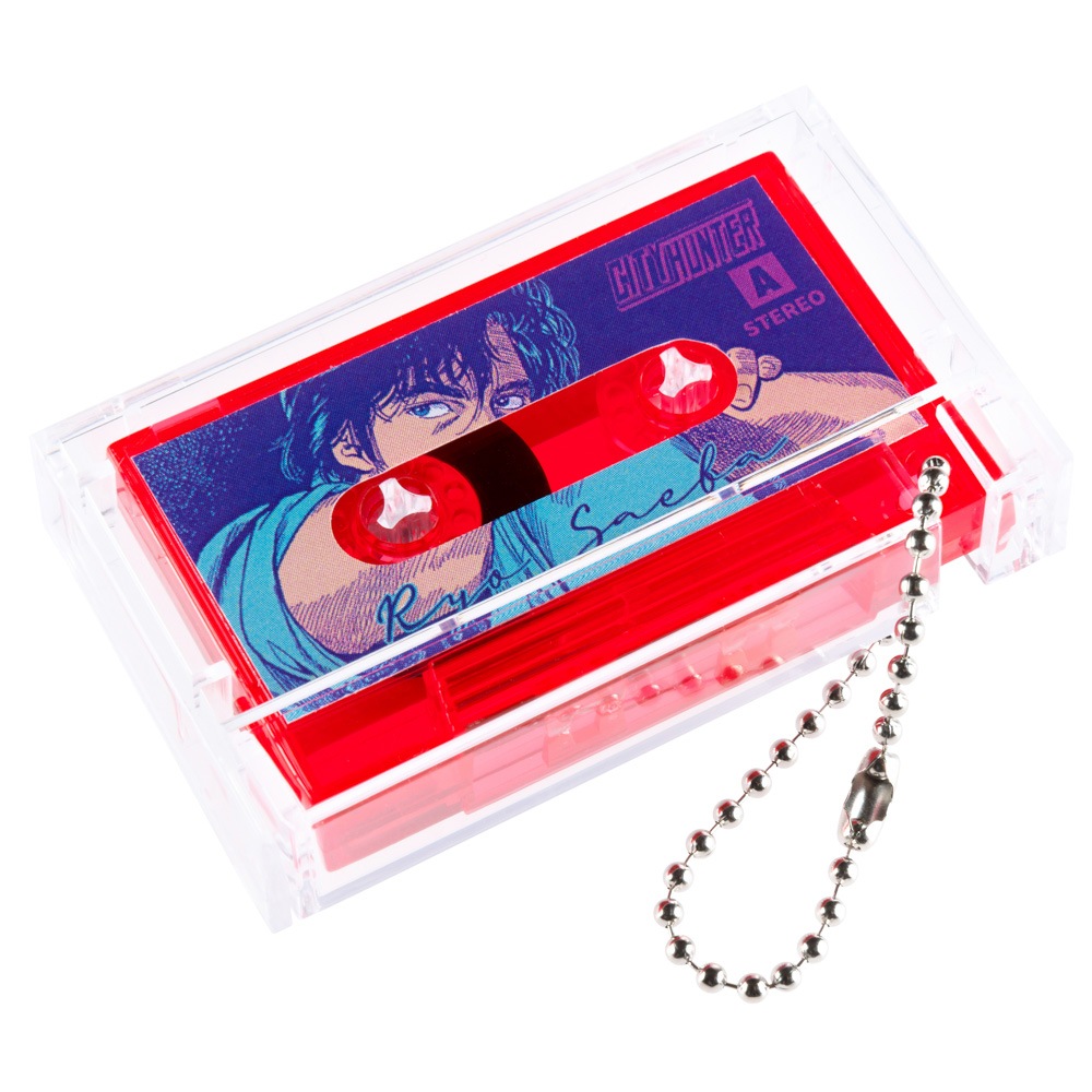 シティーハンターのステッカー付きカセットテープ風キーホルダーです。